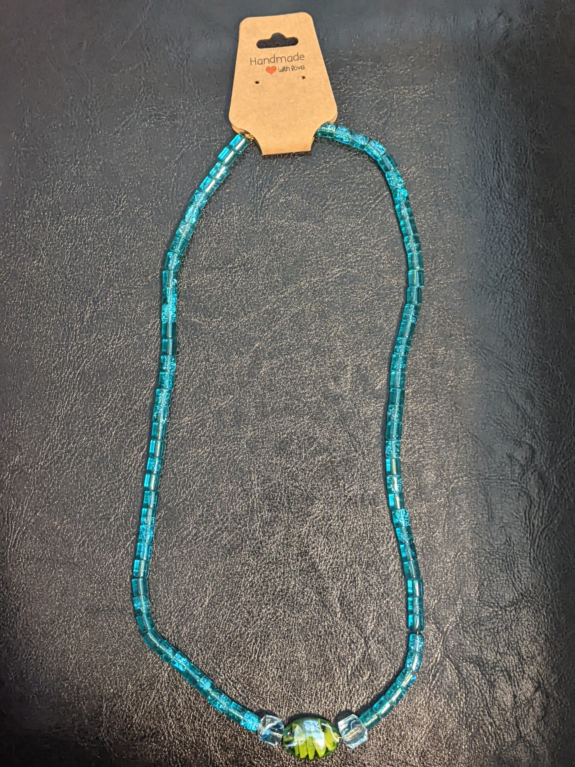 Teal and green glass necklace